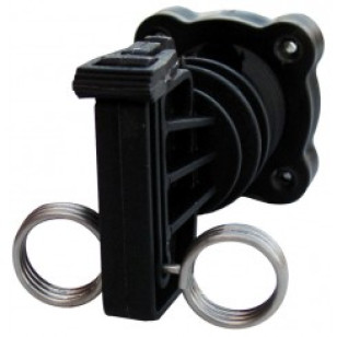 Consta de un aislador Z-9 para roscarlo en la piqueta y una pieza conductora con dos orejas que se coloca anclada en el aislador Z-9. A cada uno de los estremos de estas orejas se continua la conductividad del cercado acoplando a estas tanto cinta, hilo, cable, muelles de puertas o empuñaduras.