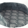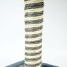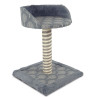Todos los tejidos que lo componen son de color gris y crema. Parte de ellos son de un pelito muy suave, y el resto es una tela de algodón con un bonito estampado de árboles. El sisal del poste combina ambos colores. Esta gama cromática es muy fácil de adaptar a cualquier estilo de decoración.