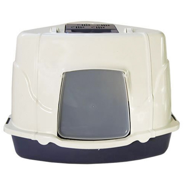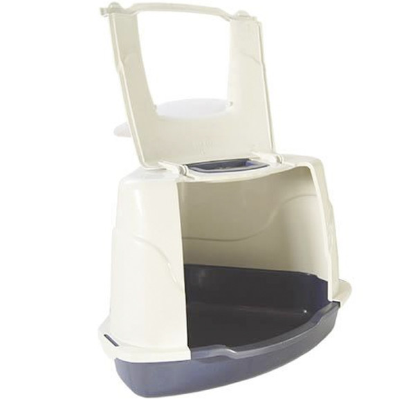 Fabricado con plástico liso de primera calidad, no tóxico y resistente a los rayos UV. Tiene una gran puerta abatible translucida, que permite el paso de la luz al interior del aseo, reduciendo la sensación de cerramiento para el gato.