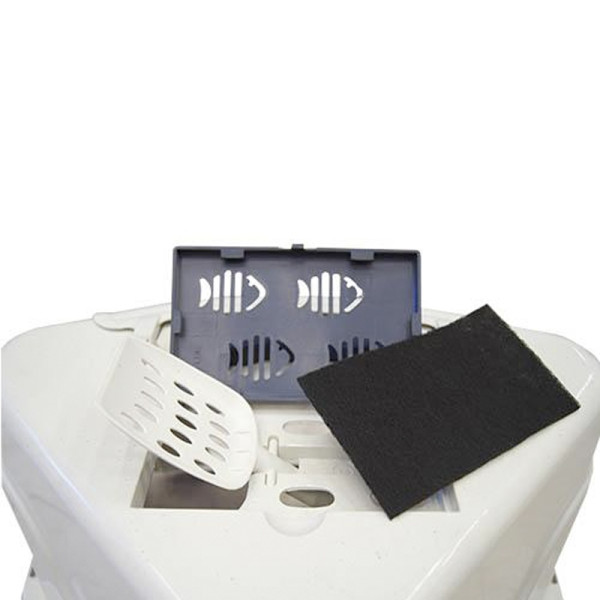 Incluye filtro de carbono, que atrapa y neutraliza el mal olor, paleta recogedora y asa transportadora integrados en el diseño del techo de la gatera.