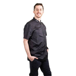 Incluye un bordado decorativo en la espalda en blanco y negro que distingue al profesional como peluquero canino. El tejido técnico especial repele el pelo, evitando que se adhiera a la ropa. Fabricada en poliamida 100%, es transpirable, ligera, resistente, no se arruga y se seca rápidamente.