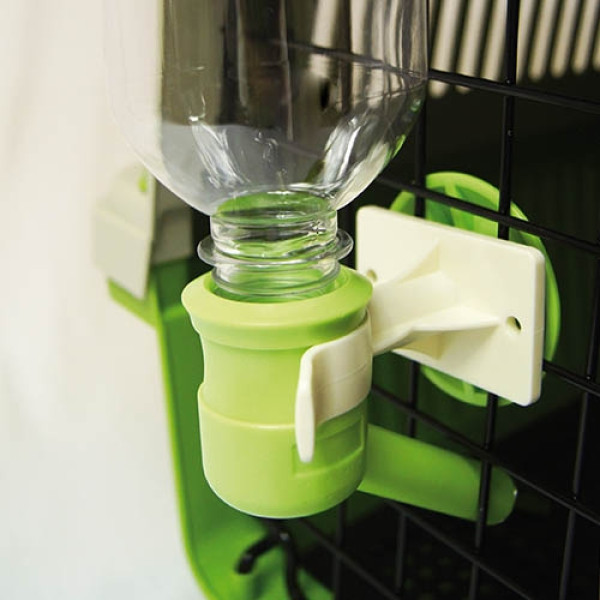 El sistema de sujeción a la jaula, parque o transportín, es de rosca. Muy sencillo y rápido de instalar.