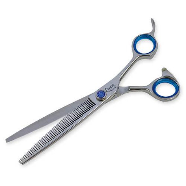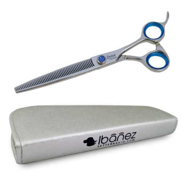 Para el vaciado de pelo muy denso como el de las razas de capas dobles son aconsejables tijeras con otro diseño (dientes más separados).