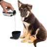 La tapa tiene además la función de recipiente. Gracias a su forma permite usarla como cuenco para que su perro pueda beber cómodamente.