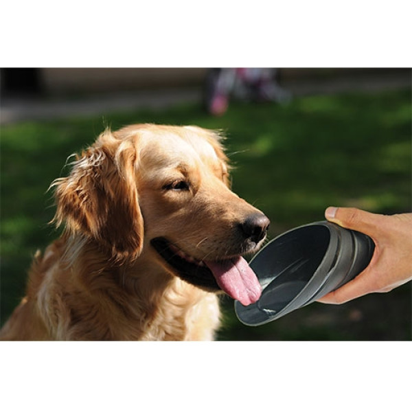 La tapa tiene además la función de recipiente. Gracias a su forma permite usarla como cuenco para que su perro pueda beber cómodamente.