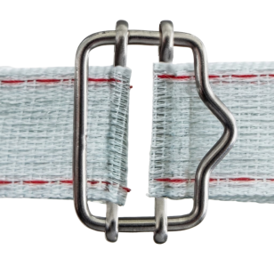 En cercados eléctricos con cinta ancha, especialmente en instalaciones para caballos, es fundamental evitar nudos que dañen los conductores internos. Este broche de hebilla mantiene todos los hilos en contacto y reduce la resistencia eléctrica en el punto de unión. Es una solución sencilla, fiable y muy recomendable para mantener la potencia del pastor eléctrico y la tensión correcta de la cinta.