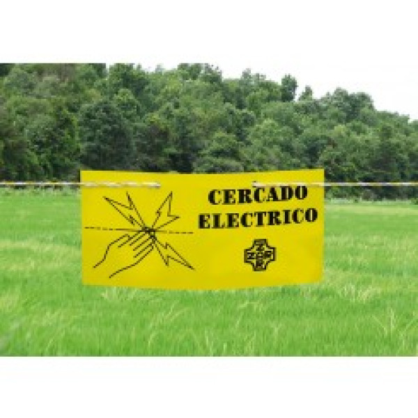 Cartel indicador de cerca eléctrica, es obligatorio su uso en las cercas instaladas en los bordes de las vías públicas