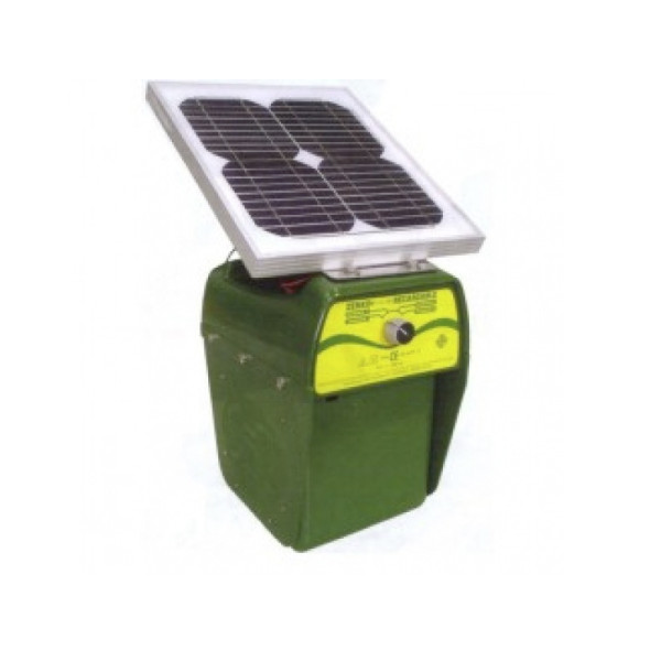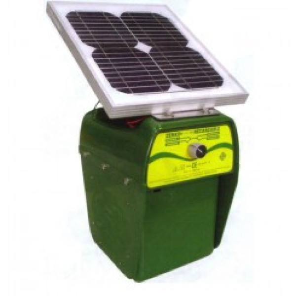 El pastor incluye un panel solar de 10 watios que mantiene la carga de la batería de forma continua. Para un mejor mantenimiento del panel solar es necesario mantenerlo limpio y orintarlo al sol (hacia el sur). Este pastor recargable con panel solar se suministra con un cargador de baterías de plomo de 12 voltios y 3 amperios/hora por si fuese necesaria por la falta prolongada de sol. El pastor viene con la batería recargable en el interior de su carcasa.