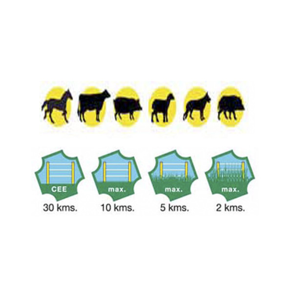 - Pila recargable 12 voltios/ 18 Ah incluida en el interior de la carcasa del pastor.