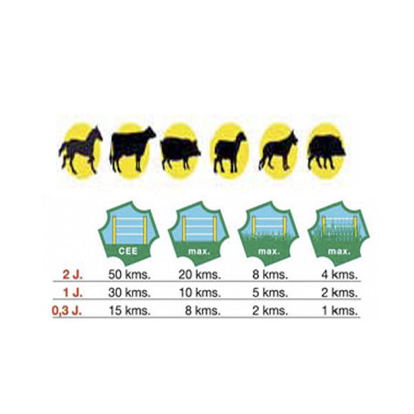 Puede seleccionar si desea adquirir el pastor con batería o sin ella. Puede funcionar con cualquier batería de 12 voltios y 40 o 45 ah.