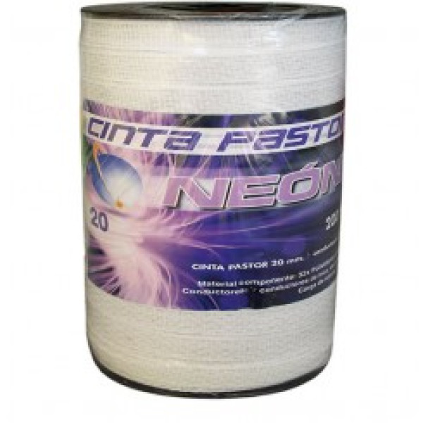 Cinta conductora Neón para pastor eléctrico, se trata de una bobina de 20mm, siendo el rollo de 200 metros.