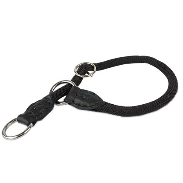 Con anillas metálicas cromadas, y tope que permite ajustar el collar perfectamente al cuello de su perro.