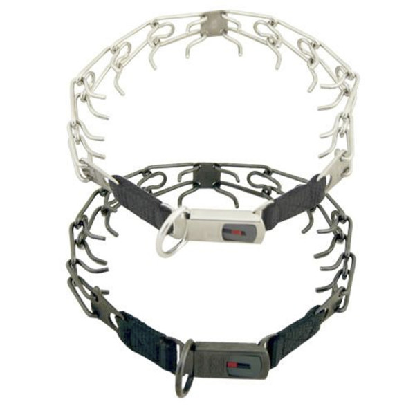 Los Collares SPRENGER ULTRA-PLUS DE ACERO INOXIDABLE CLICLOCK pueden adquirirse en dos colores, el clásico color natural del acero y la nueva versión negra brillante, muy elegante y novedosa.