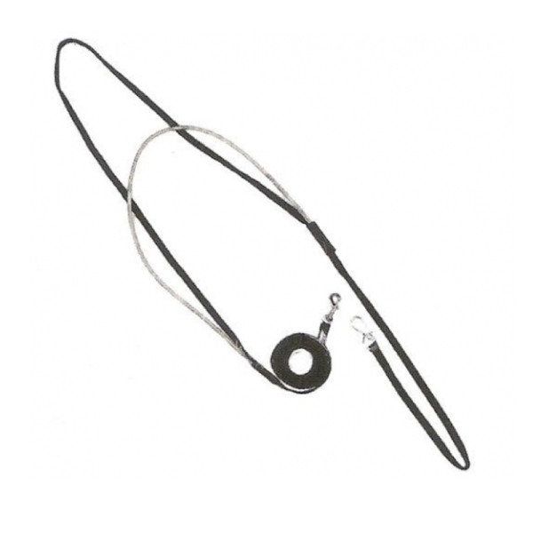 | Correa de 6 metros de longitud hecha de nylon con una inserción de goma elástica y doble mosquetón. Diseñada especialmente para adiestramiento y trabajo deportivo, resulta muy útil para trabajar la mordida en los ejercicios de defensa, el tumbado con distracciones, las órdenes a distancia, etc. La goma se estira hasta 50 cm por lo que no tiene un retroceso repentino que pueda lesionar al perro y que ayuda al guía a calcular las distancias. La correa cuenta con doble mosquetón: uno para acoplar al collar o al arnés del perro y otro denominado de “pera” con bloqueo de seguridad en el otro extremo para poder atar al perro a un poste o pared. |