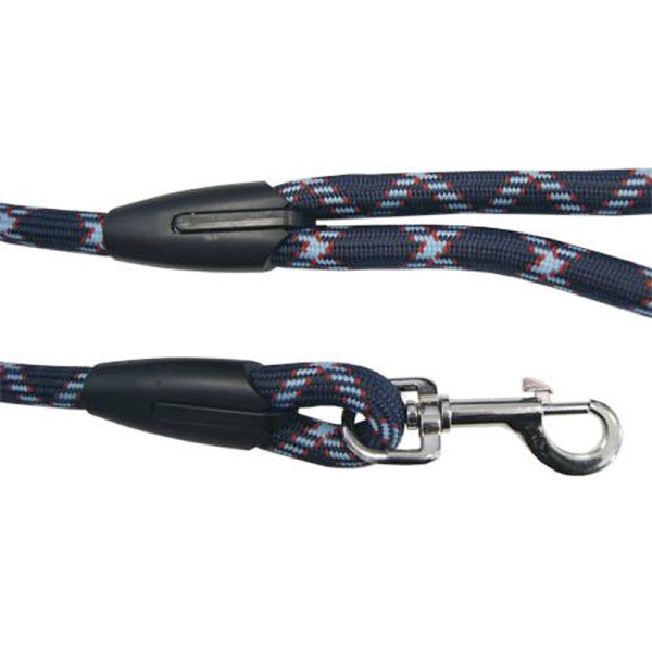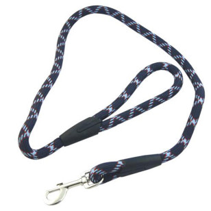 Correa gruesa redonda para perros grandes o que tiran. Esta correa está hecha en PP, material de tacto suave pero resistente. Dispone de un mosquetón metálico fuerte para engancharla con seguridad al collar del perro y unas piezas de plástico negro liso compactas que le confieren un aspecto elegante y de calidad.