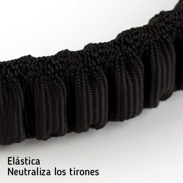 Esta correa elástica, fabricada en nylon de gran calidad, está diseñada para absorber parte del impacto que genera el perro con los tirones, siendo extensible de 134 cm a 146 cm aproximadamente. Esta cualidad aumentará el confort de sus paseos o salidas a correr.