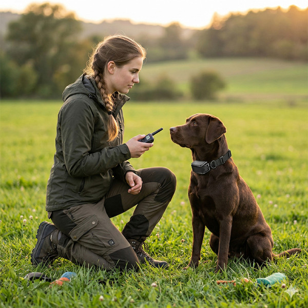 Funciona mediante pilas, lo que garantiza disponibilidad inmediata sin depender de tiempos de carga. Es una herramienta adecuada tanto para obediencia básica como para refuerzo en perros de trabajo que requieren coherencia y respuesta inmediata en el campo o entorno abierto.