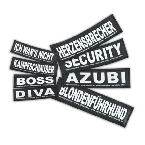 Gracias a las etiquetas de Julius K9 100% personalizadas, puede colocar rápidamente un texto personalizado en el espacio velcro de su collar o arnés Julius K9 sin gastarse una fortuna.