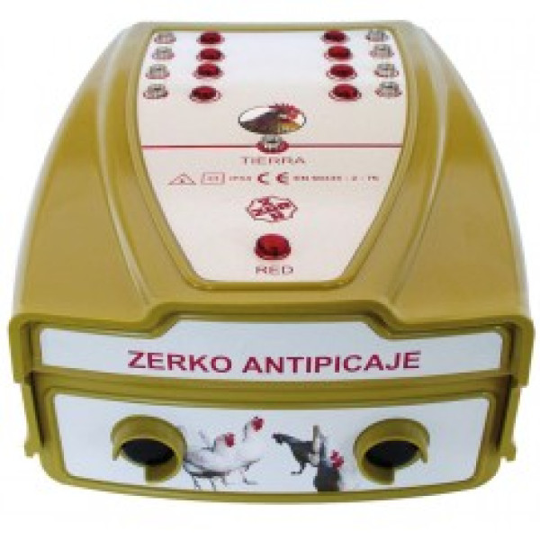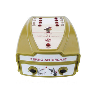 Pastor eléctrico antipicaje para gallinas. Evita que las gallinas piquen los huevos. Tiene 8 sálidas de línea y funciona a la corriente eléctrica. Indicador de led luminoso de funcionamiento.