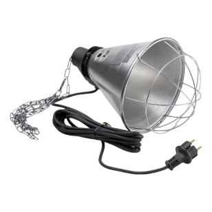 Un accesorio imprescindible para trabajar con bombillas infrarrojas de forma segura. Su protector metálico y su sistema de suspensión regulable lo convierten en una opción muy práctica para la cría de animales.