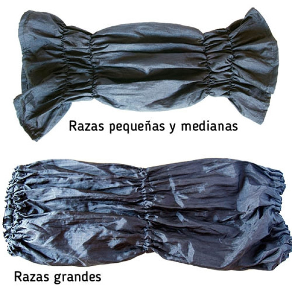 Dos tamaños diferentes en color negro. En función del tamaño de la cabeza del perro y del tamaño de las orejas. (En orejas muy grandes como las del Bassert Hound es aconsejable el protector de tamaño grande).