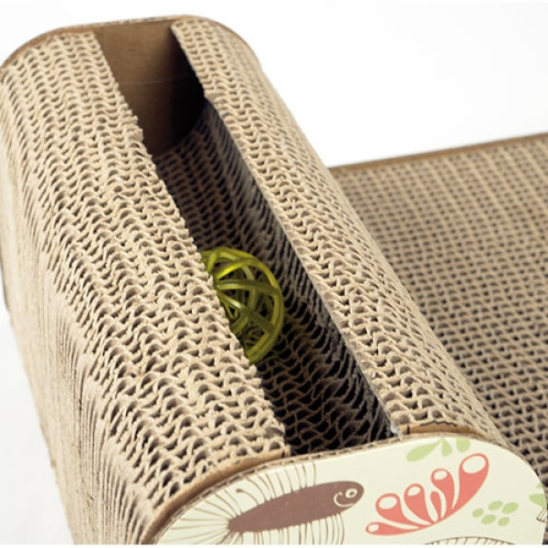 Rascador reciclable para gatos fabricado completamente en cartón ondulado.