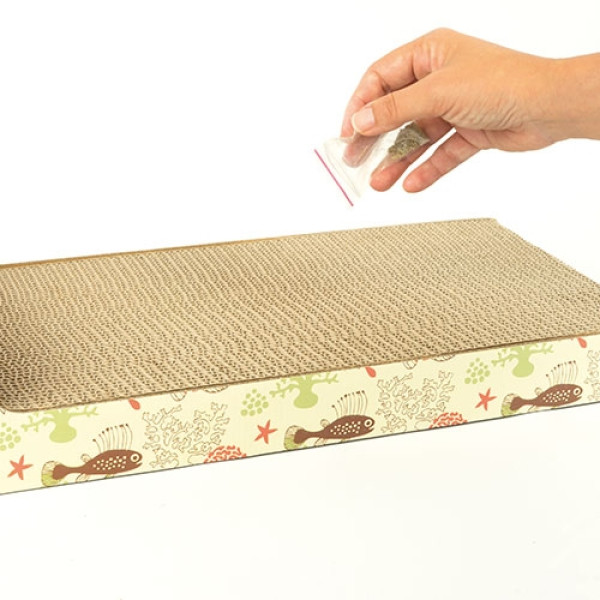 Incluye una bolsita de hierba gatera (catnip) para que la ponga por dentro y conseguir así que su gato se sienta más atraído por su rascador.