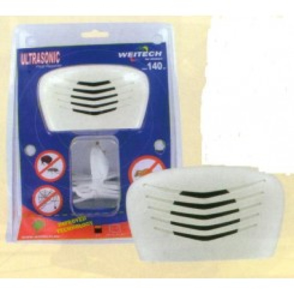 Repepelente para eliminar ratones e insectos de su hogar, su funcionamiento es a través de ultrasonidos, alcanzando un radio de acción de 140 metros cuadrados.