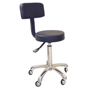Taburete para peluquería canina con respaldo, que permite relajar la espalda en determinados momentos. El respaldo tiene cierta holgura lo que lo hace especialmente cómodo. Nos permite trabajar con la espalda recta y acumular menos cansancio en las piernas.
