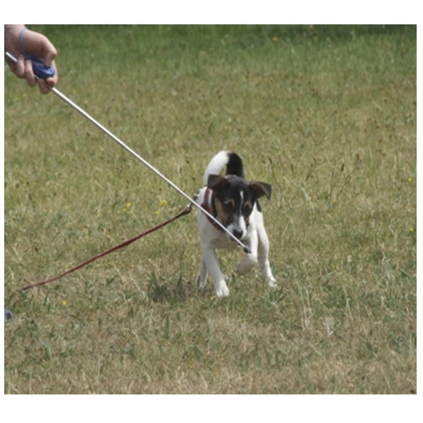 Consiste en un bastón metálico extensible hasta 70 cm con una bola de goma en la punta para hacer más fácil de ver el punto exacto en el que queremos que el perro se fije.