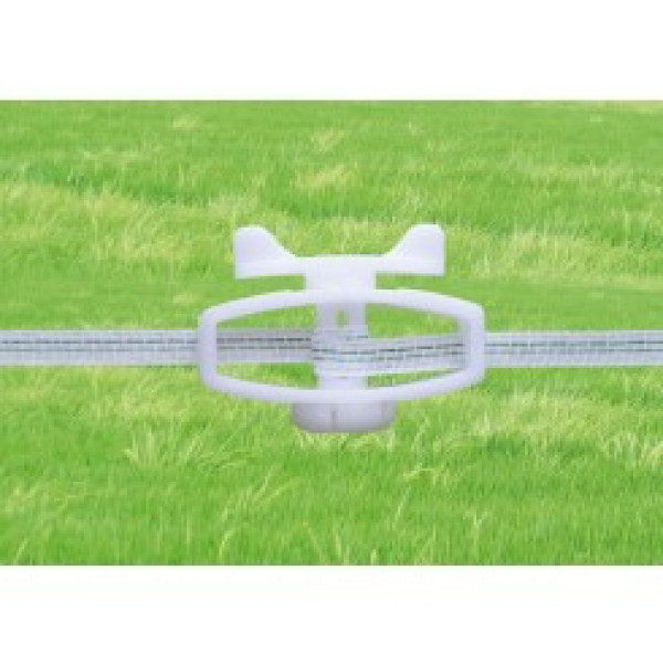 Se trata de una pieza fabricada en plástico virgen con resistencia a los rayos ultravioletas, por la que se pasa el cable y la cinta para su tensión.