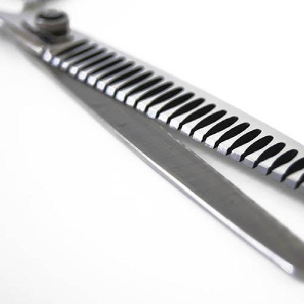 Tijera de esculpir profesional para peluquería canina de dientes muy abiertos rectos.